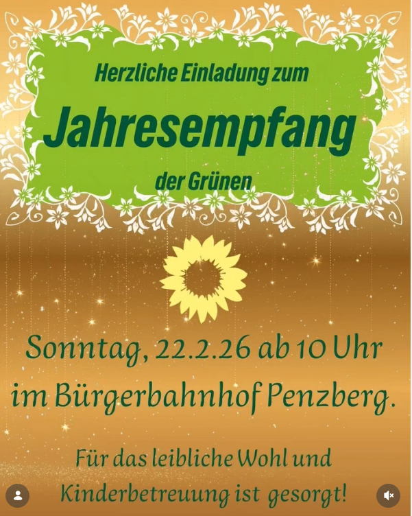 Herzliche Einladung zum Grünen Jahresempfang: In entspannter Atmosphäre bei Live-azz und Leckereien gibt es Gelegenheit zum Kennenlernen, Austausch über Themen, die Penzberg bewegen und für gute Gespräche.